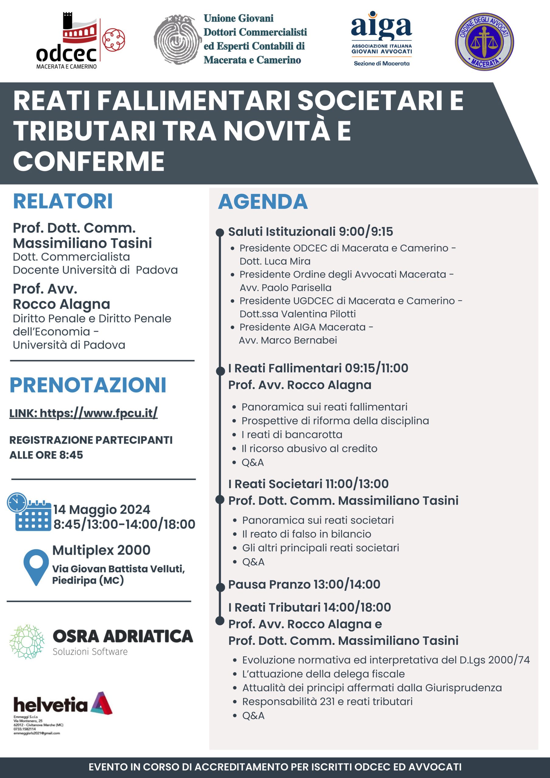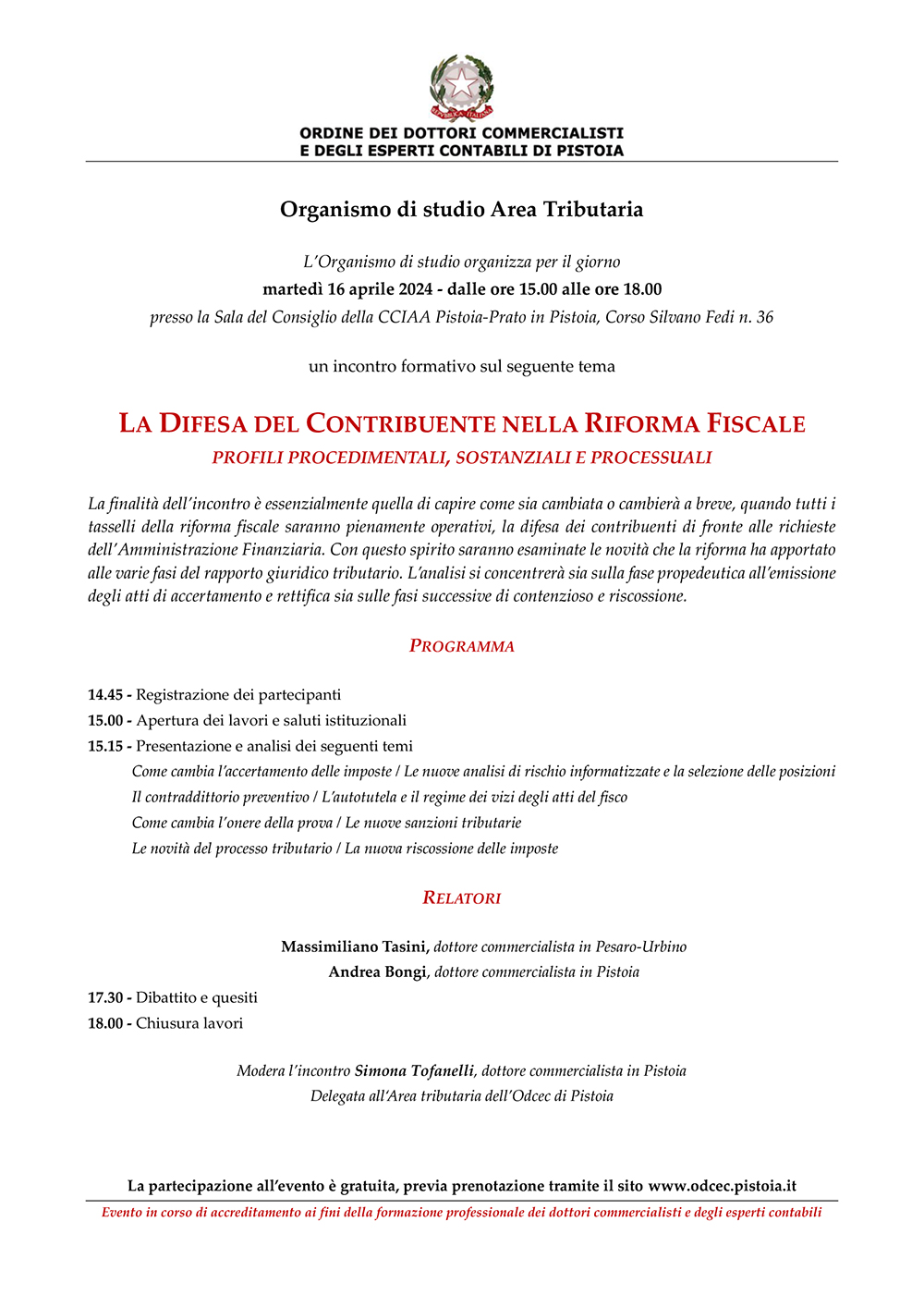 Il Dottor Massimiliano Tasini sarà relatore martedì 16 aprile 2024 al convegno organizzato dall’Ordine dei Dottori Commercialisti e degli Esperti Contabili di Pistoia.