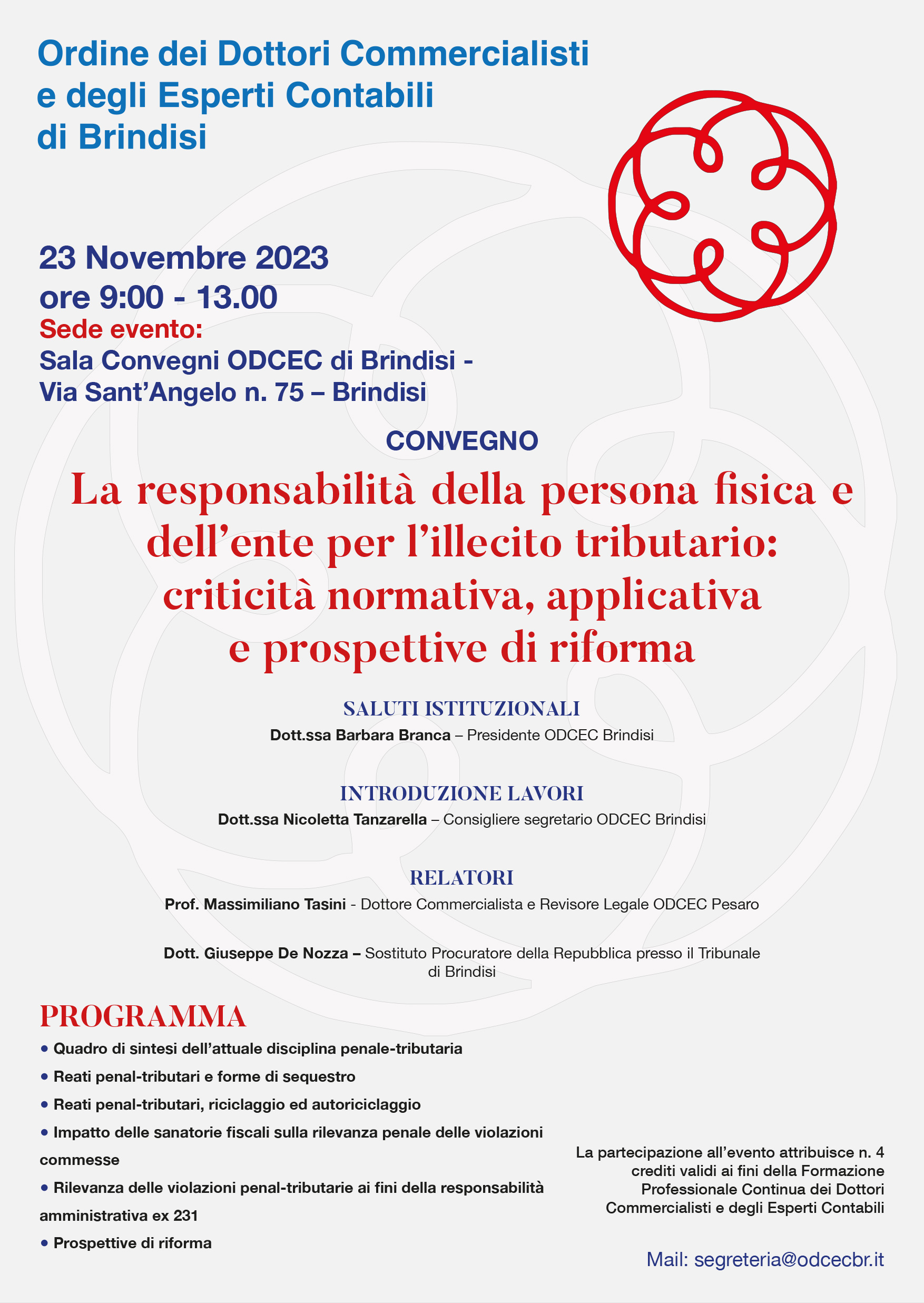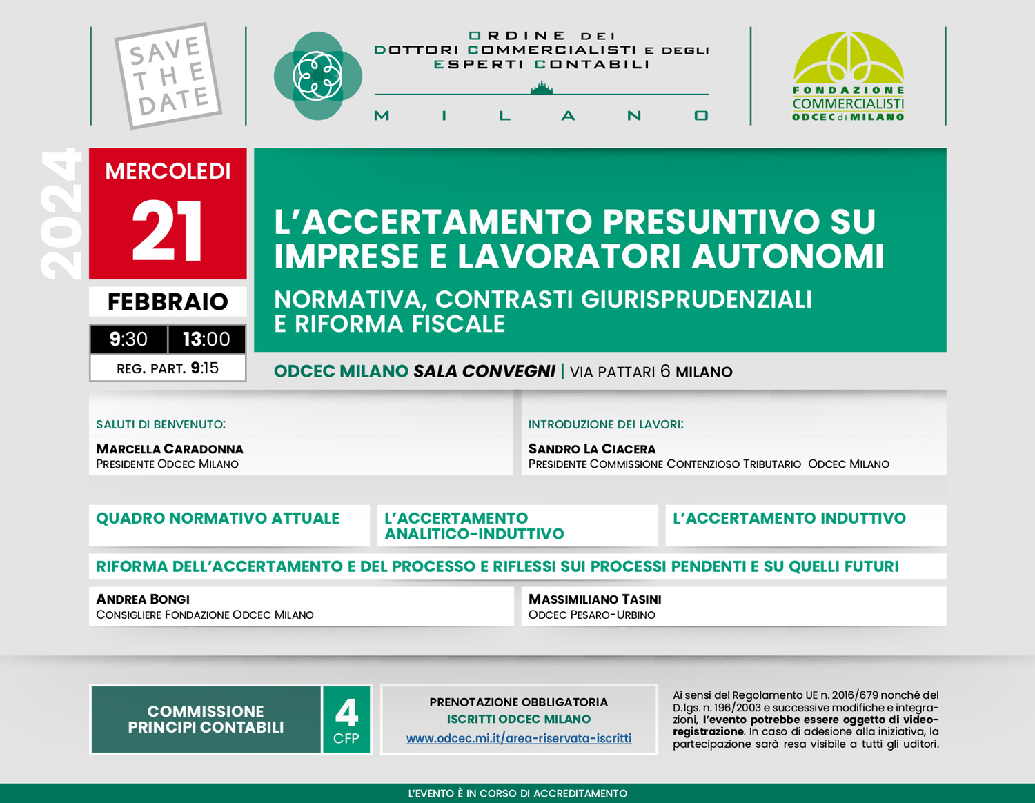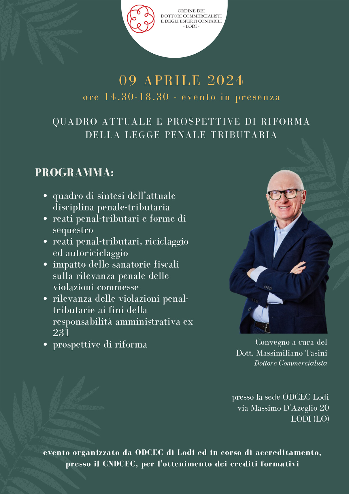 Il Dottor Massimiliano Tasini sarà relatore martedì 9 aprile 2024 al convegno organizzato dall’Ordine dei Dottori Commercialisti e degli Esperti Contabili di Lodi.