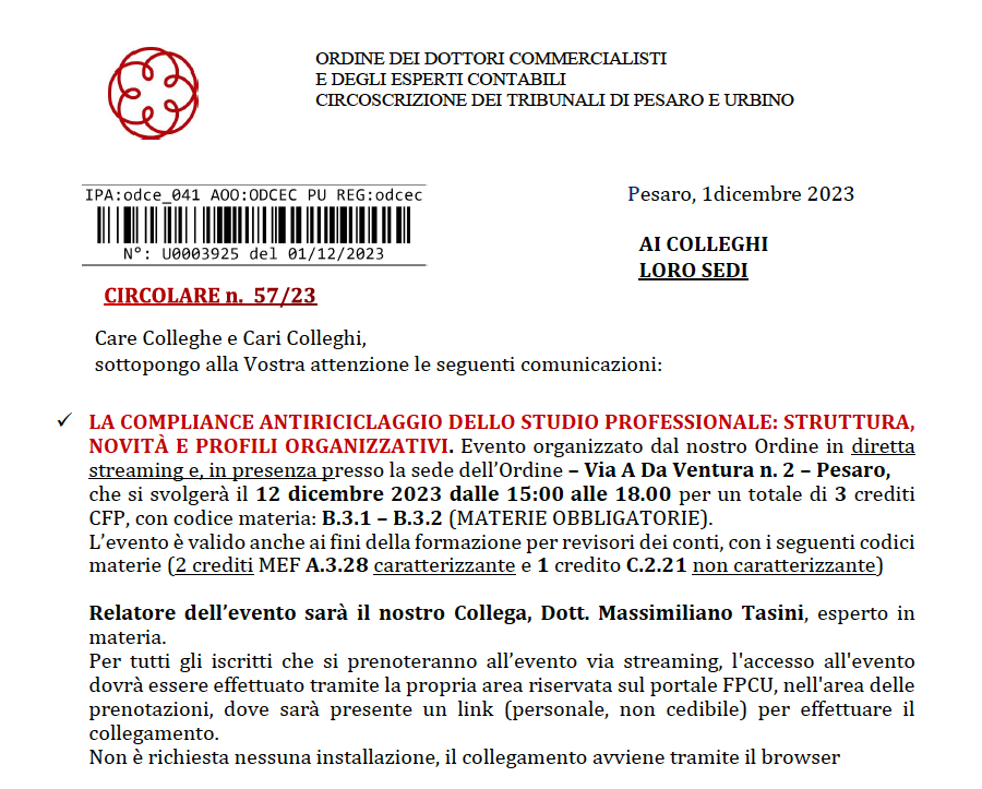 Il Dottor Massimiliano Tasini sarà relatore martedì 12 marzo 2024 al convegno organizzato dall’Ordine dei Dottori Commercialisti e degli Esperti Contabili di Pesaro e Urbino in collaborazione con ANDAF- Marche Abruzzo Molise e Deloitte.